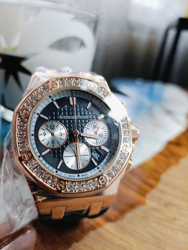 Het horloge heeft een siliconen bandje en een wijzerplaat met glinsterende zirkonia's.