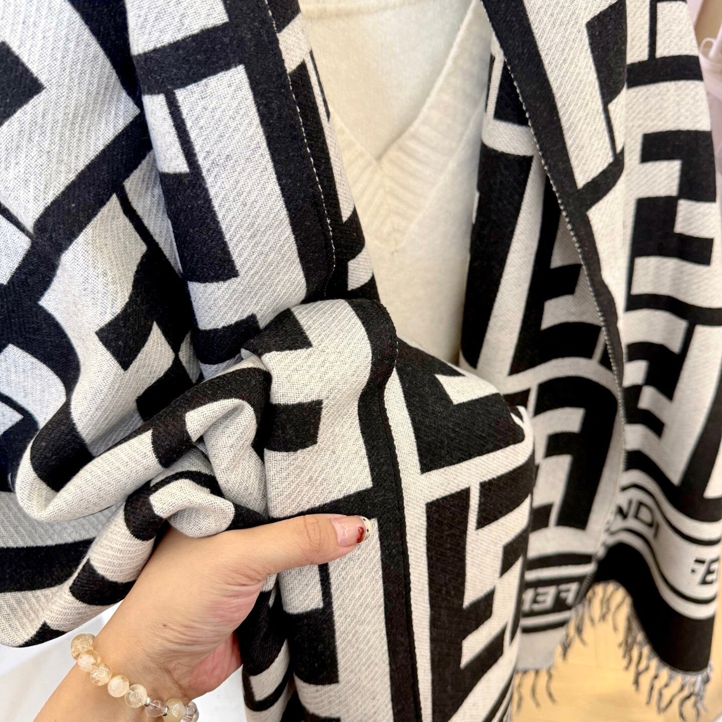 De sjaal is zeer praktisch en veelzijdig, valt mooi, is warm en charmant.