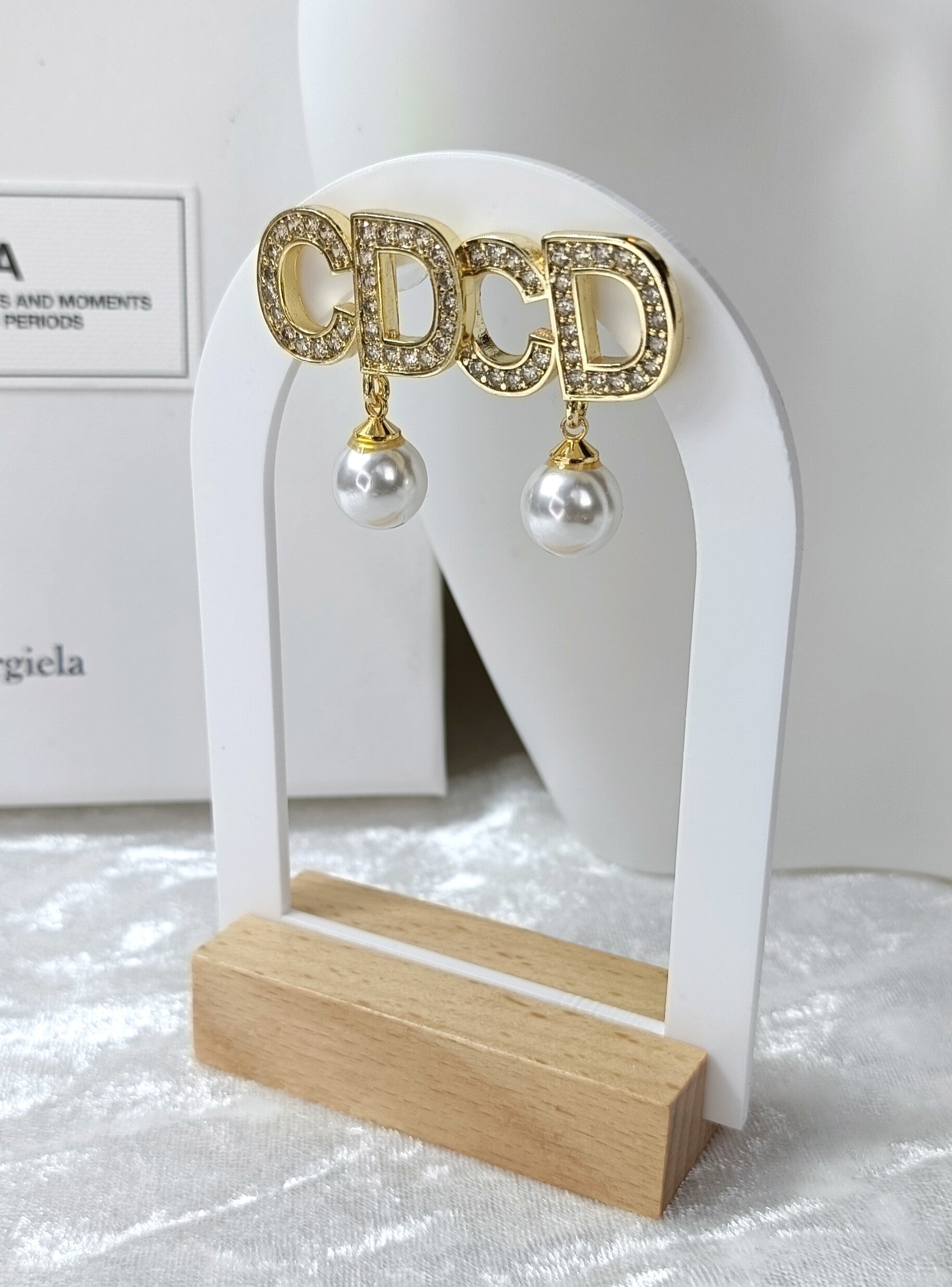 Schattige oorbellen mooi versierd met de letters C en D en een hangende parel.